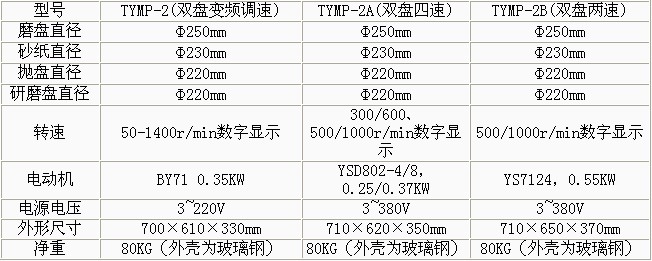 產(chǎn)品概述: •TYMP-2無級變速金相試樣研磨拋光機 無級調(diào)速,金相研磨機,轉(zhuǎn)動平穩(wěn),金相拋光研磨機,噪音低。 磨、拋、研盤轉(zhuǎn)速獨立操作。適應(yīng)各種材料的試樣制備 TYMP-2A雙盤四速金相試樣研磨拋光機 雙盤四速,金相研磨機價格,轉(zhuǎn)動平穩(wěn),金相樣品自動研磨機,噪音低,金相切片研磨機,磨、拋、研盤轉(zhuǎn)速獨立操作。適應(yīng)各種材料的試樣制備 TYMP-2B雙盤雙速金相試樣磨拋機 雙盤雙速,,轉(zhuǎn)動平穩(wěn),,噪音低,全自動金相拋光研磨機,磨、拋、研盤轉(zhuǎn)速獨立操作。適應(yīng)各種材料的試樣制備。 功能特點: •該機集污盤和罩采用玻璃鋼整體制成,,造型美觀、材料考究、經(jīng)久耐用、維護保養(yǎng)方便。 本機集三種功能為一身,金相試樣自動研磨機,使用時只需更換磨盤或拋盤就能完成各種試樣的粗磨、細(xì)磨、干磨、濕磨及拋光等各道工序。 技術(shù)參數(shù):